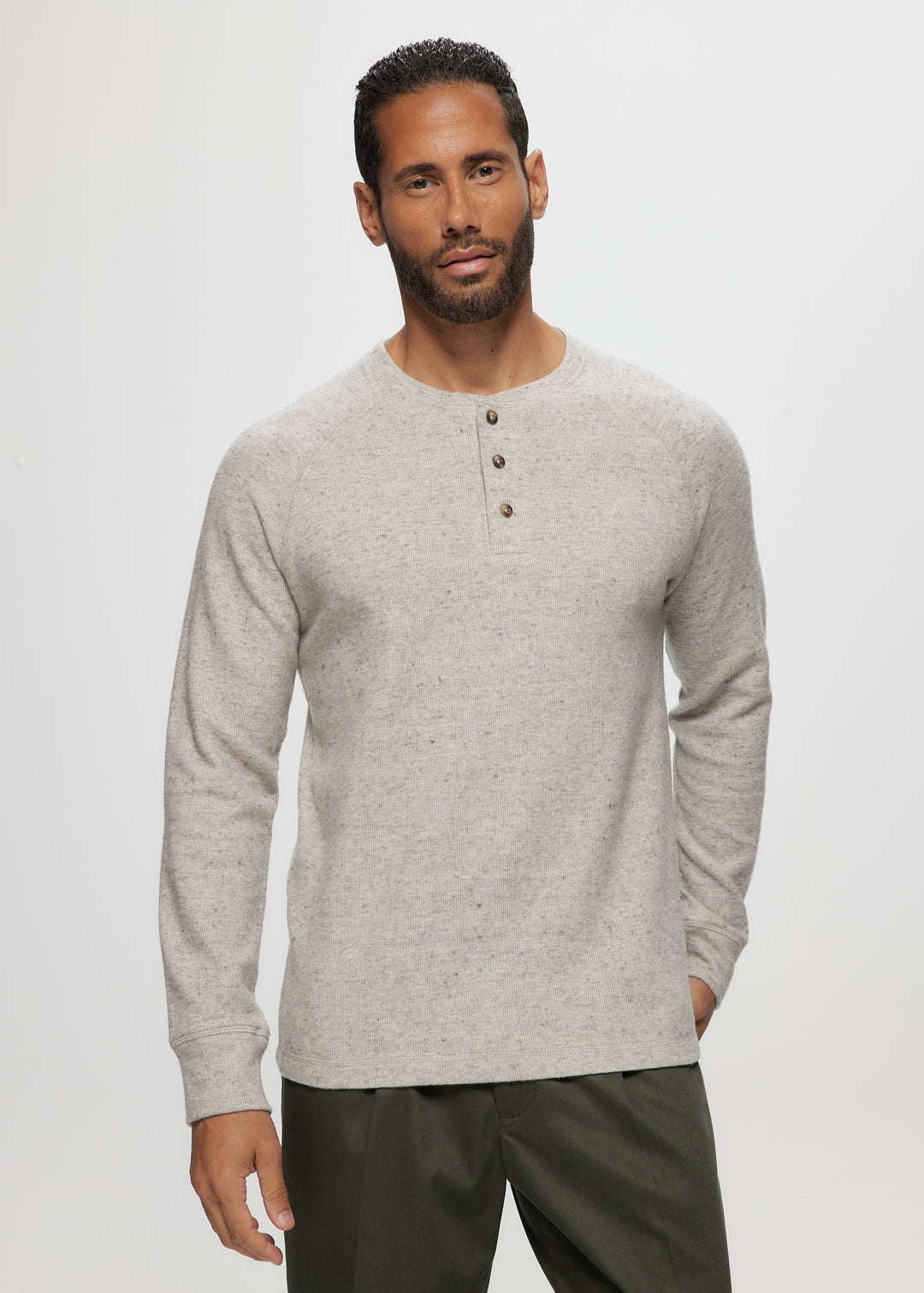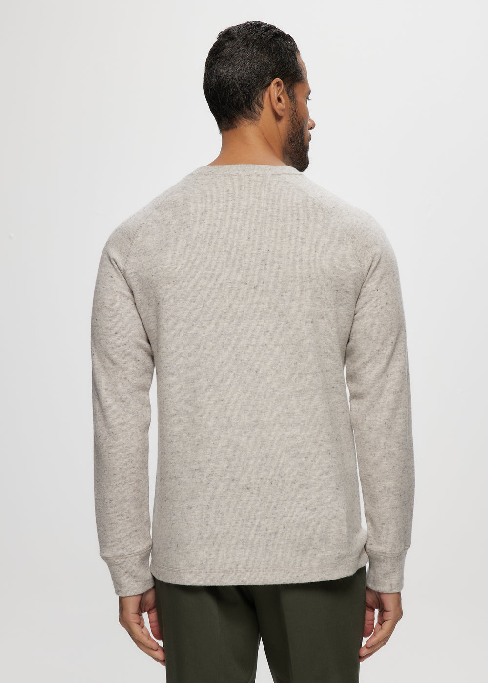 LS Heathered Brushed Raglan Henley in Oatmeal