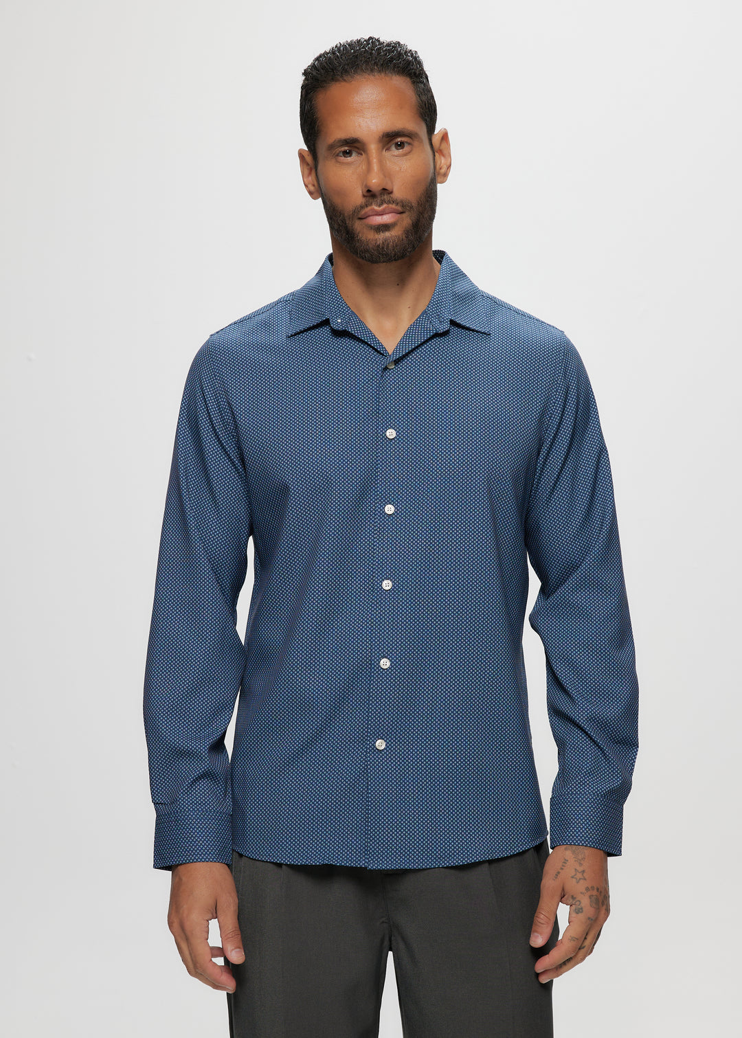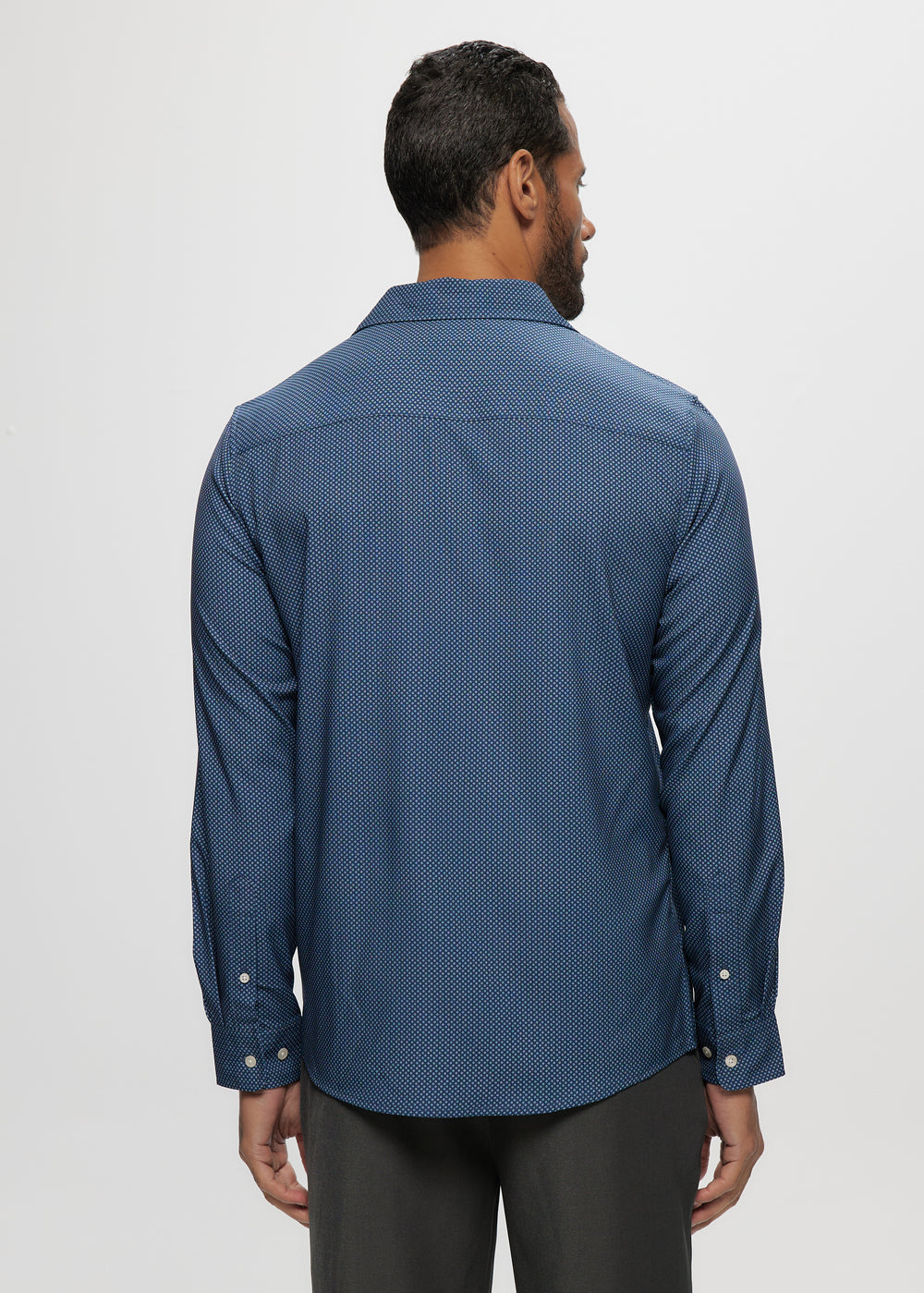 LS Soft Touch Navy Geo AOP Stretch Shirt in Navy